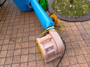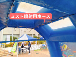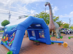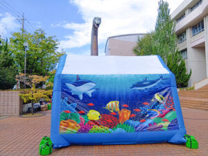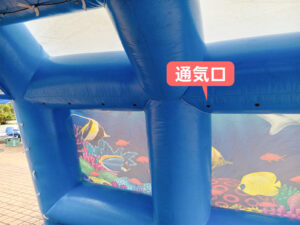 電源を引っ張り、ブロアーで全体を持ち上げています。(ふわふわ遊具によって送風口の数は変化します)