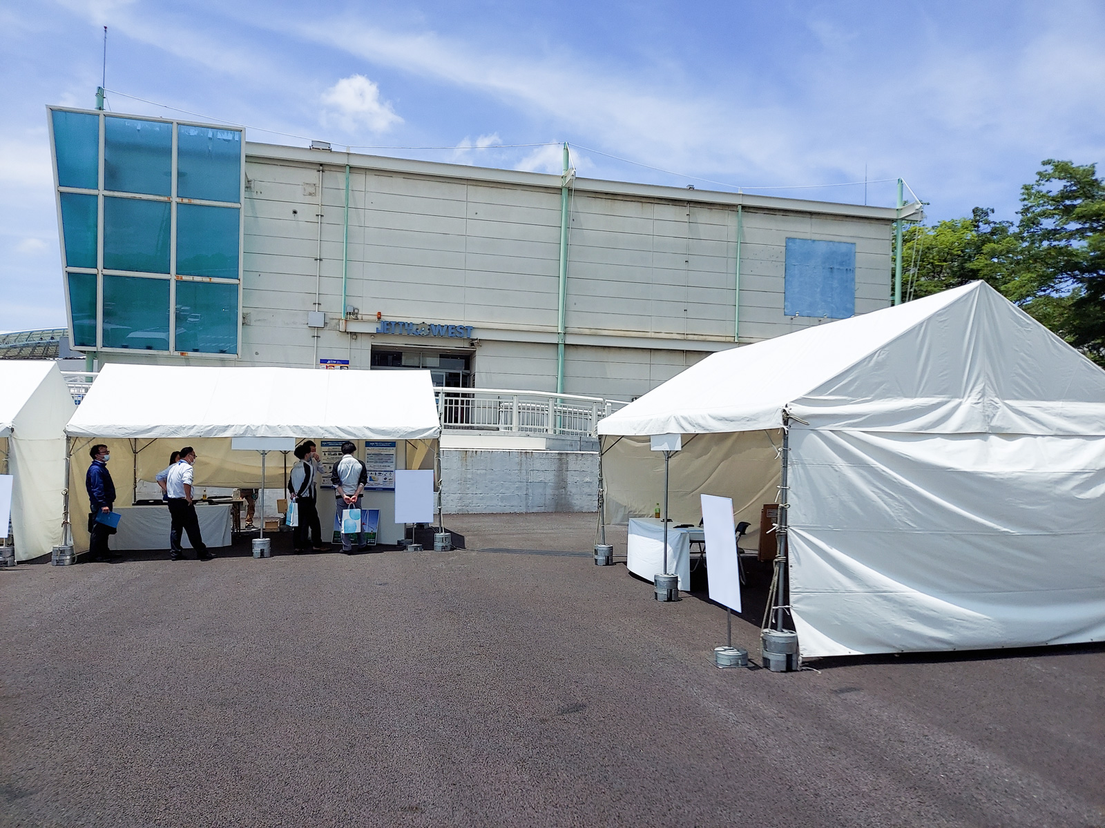 以上、名古屋港でお手伝いしたエネルギー展の施工報告でした!私たちはこんなふうに、風対策をしたり、行列が出来ることを想定してテントを孤立させたりと様々な角度から会場をサポートさせていただいております。もしこういった会場備品が入用でしたらいつでもご相談ください!