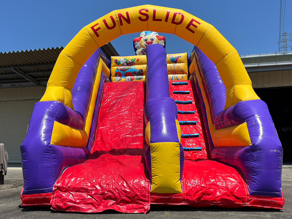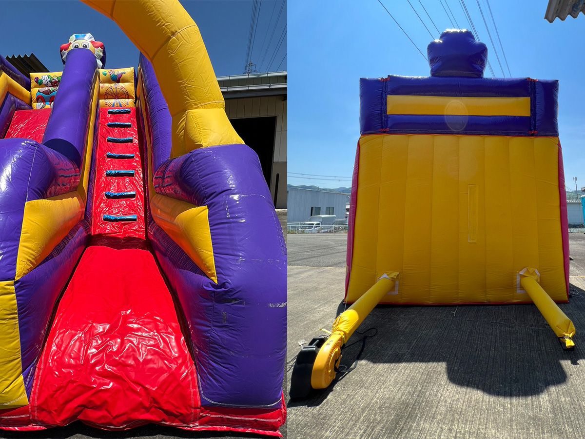 電源を引っ張り、ブロアーで全体を持ち上げています。(ふわふわ遊具によって送風口の数は変化します)