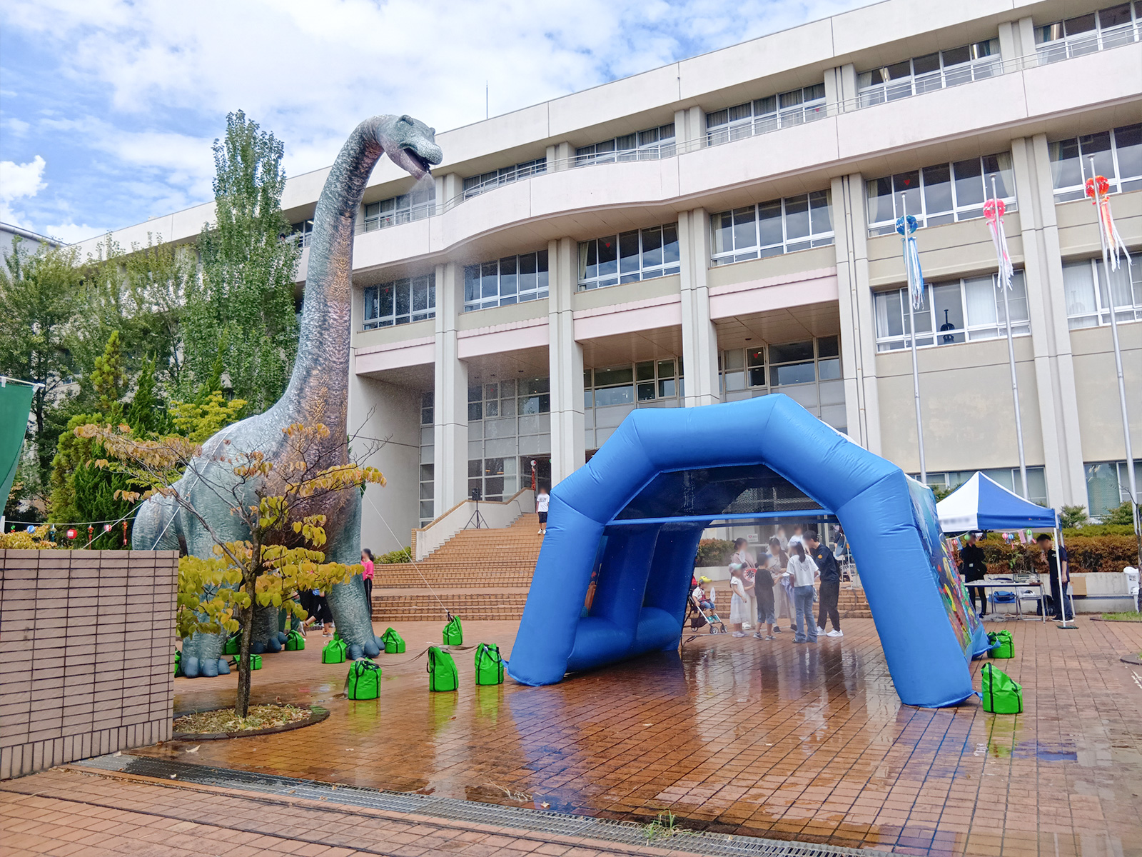 尾張旭市のとある大学で、夏祭りの入場門として冷却ミストテント、アイキャッチとしてブラキオサウルスミストバルーンを搬入させていただきました!真夏でしたので、ミストを受けてしっかりと涼むことが出来ました!
