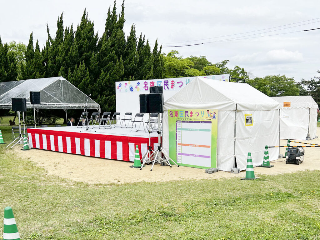 守山区元気まつりでバックパネルステージ、トラス、テント等を使用