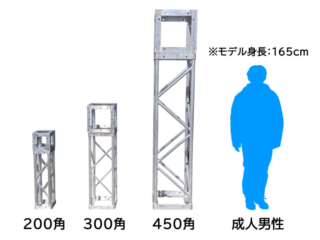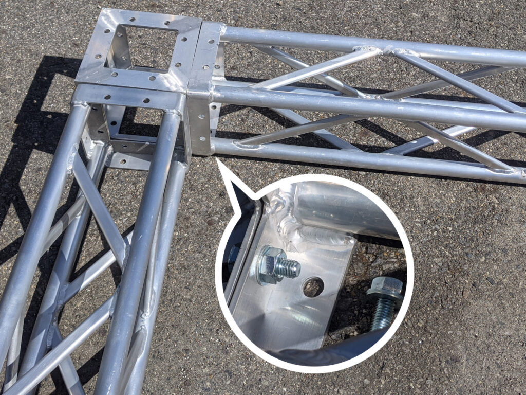 トラスは3種類使用しています(200mm、300mm、450mm) 。トラス同士は六角ボルトでぴったりと固定しています。
